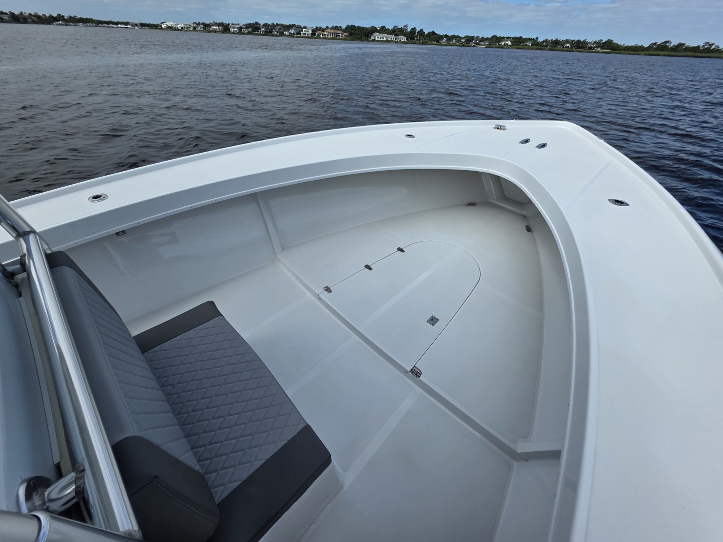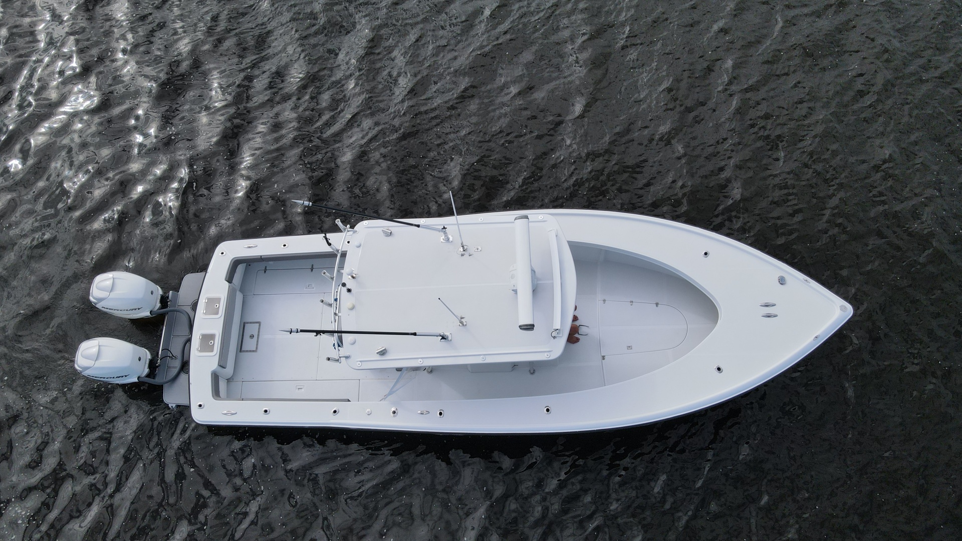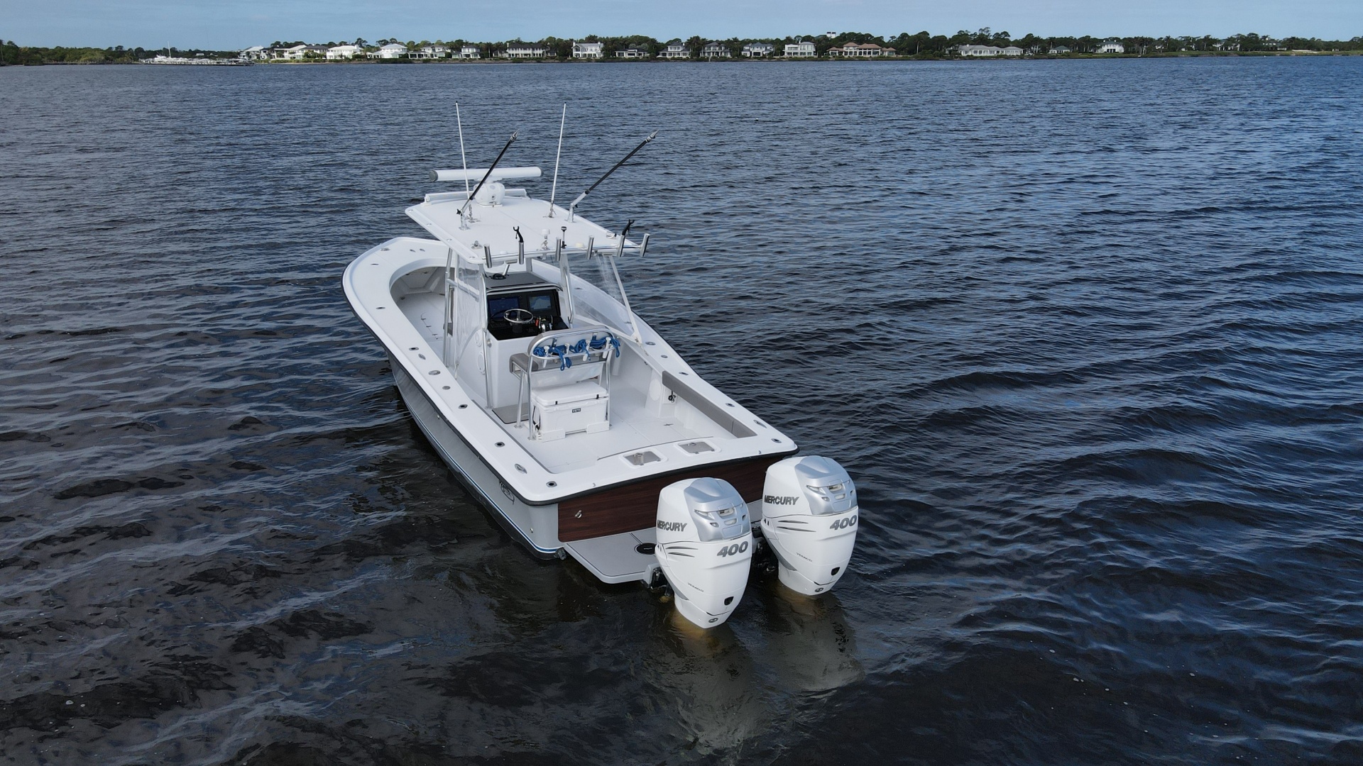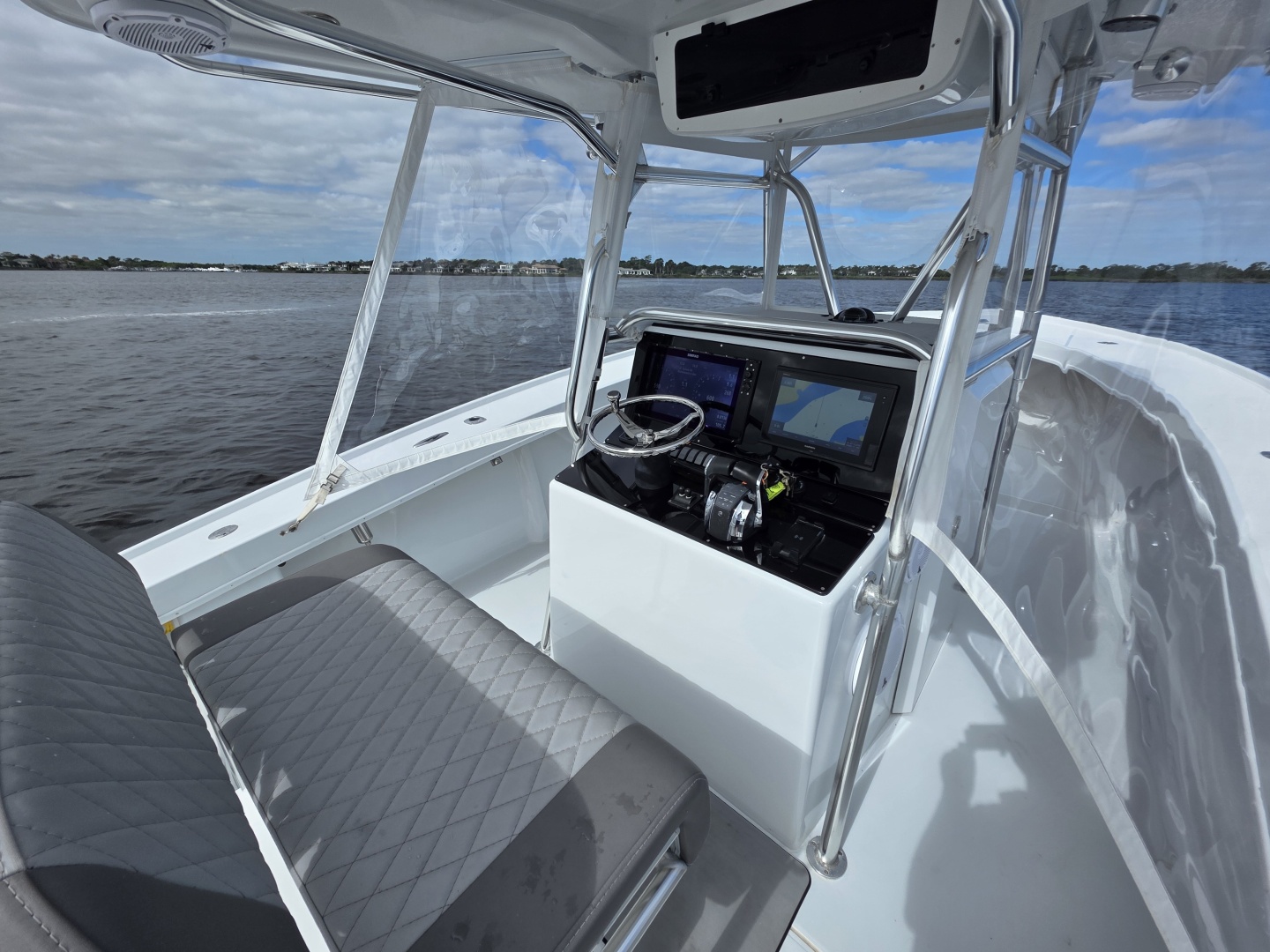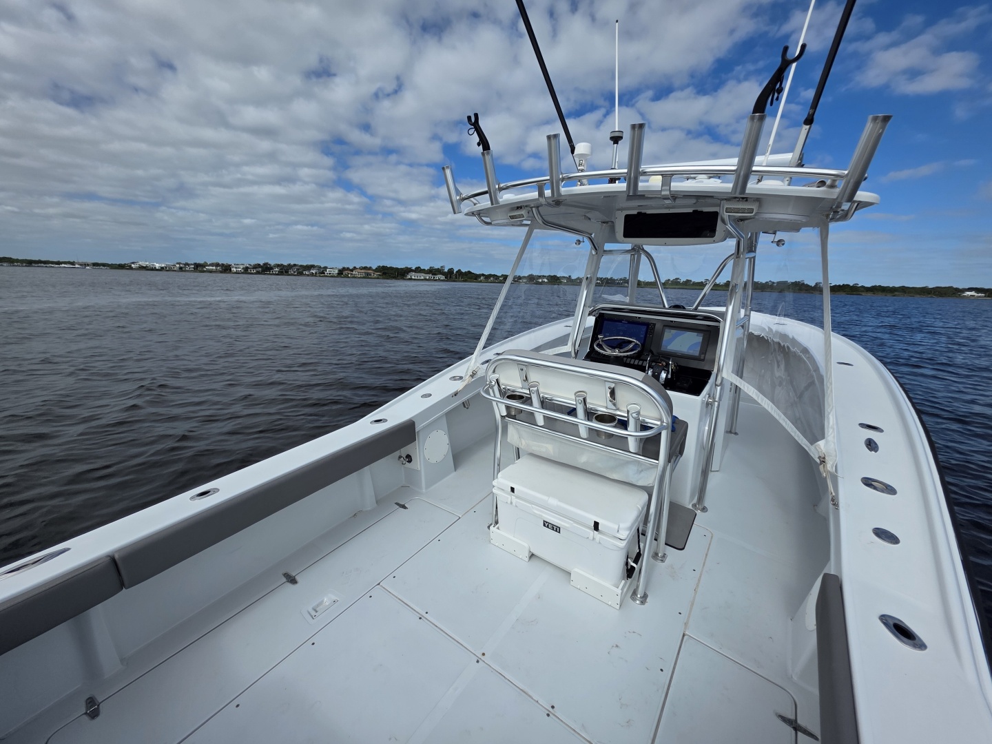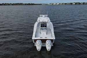 The layout is purpose-built for serious anglers. The center console configuration offers 360-degree fishability, with wide gunwales, and ample cockpit space. Below deck and in the cockpit, the boat includes large fish boxes, an aft livewell, multiple rod holders, and saltwater washdown systems. The console itself is sizable enough on many builds to house electronics and even a small head compartment, emphasizing its offshore readiness and practicality for long fishing days.