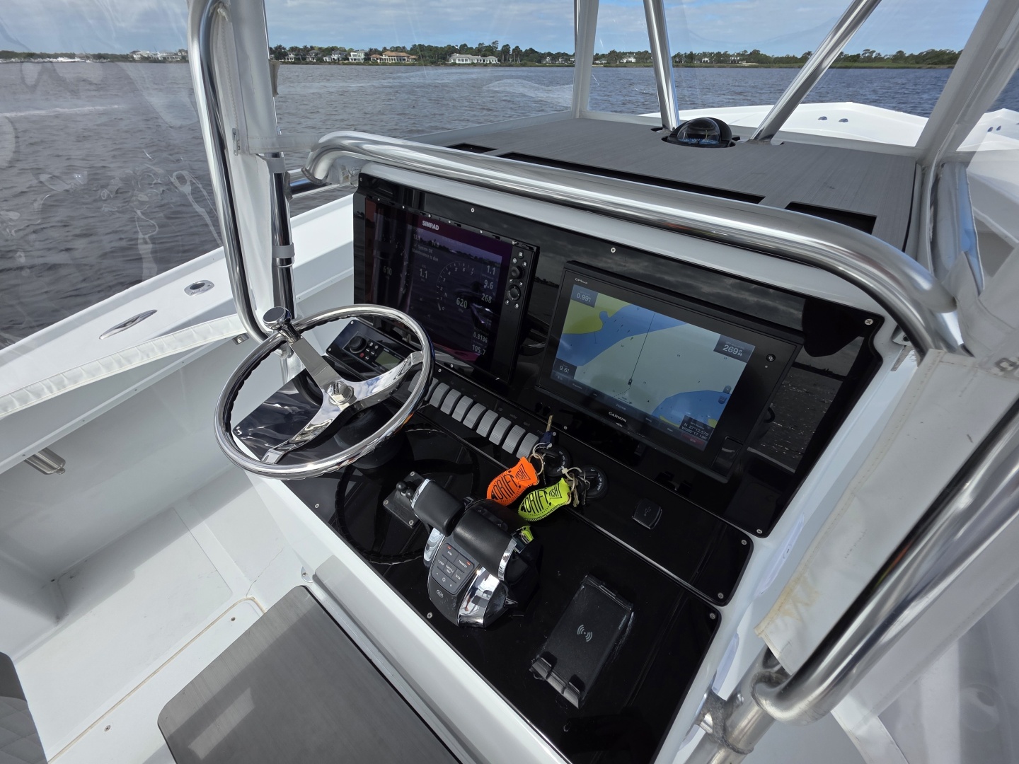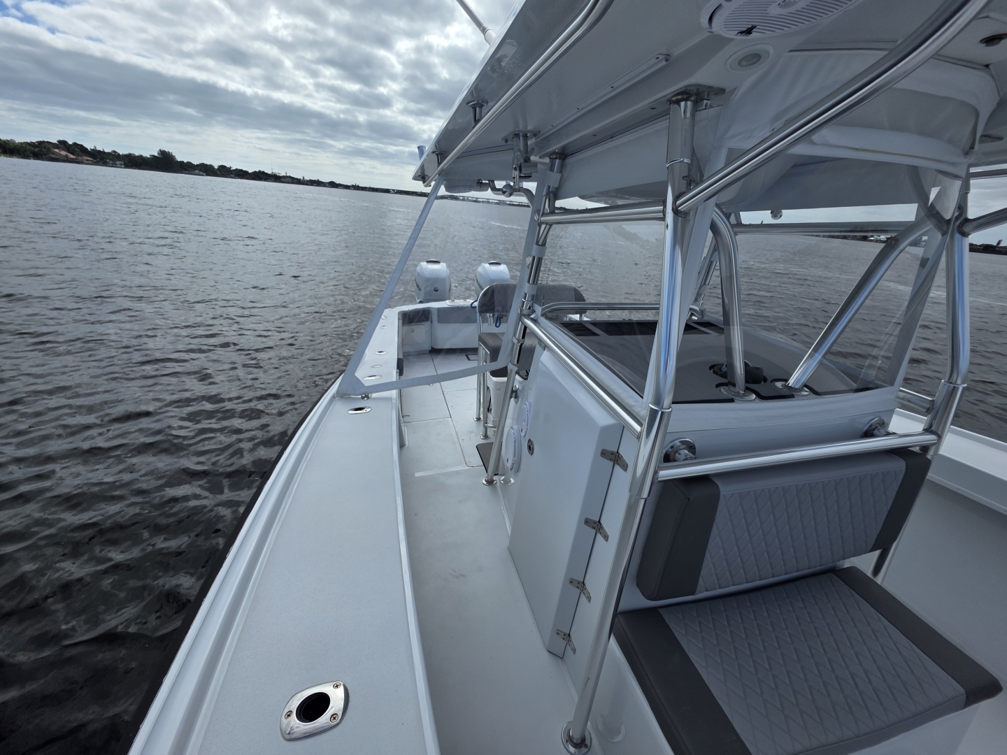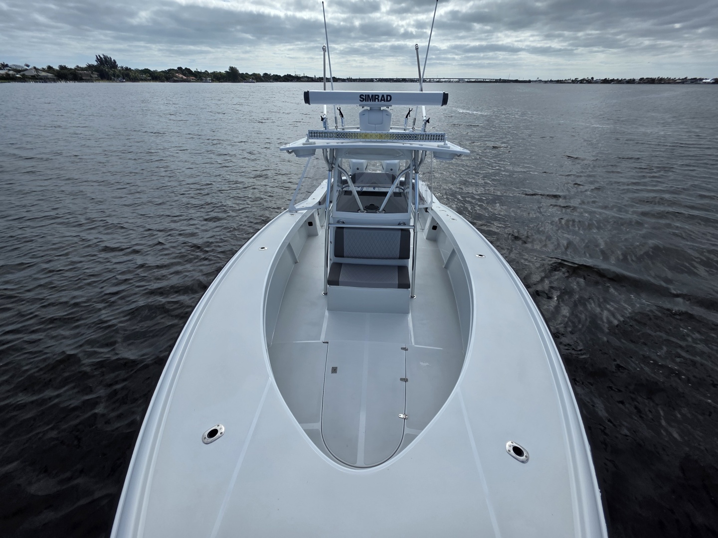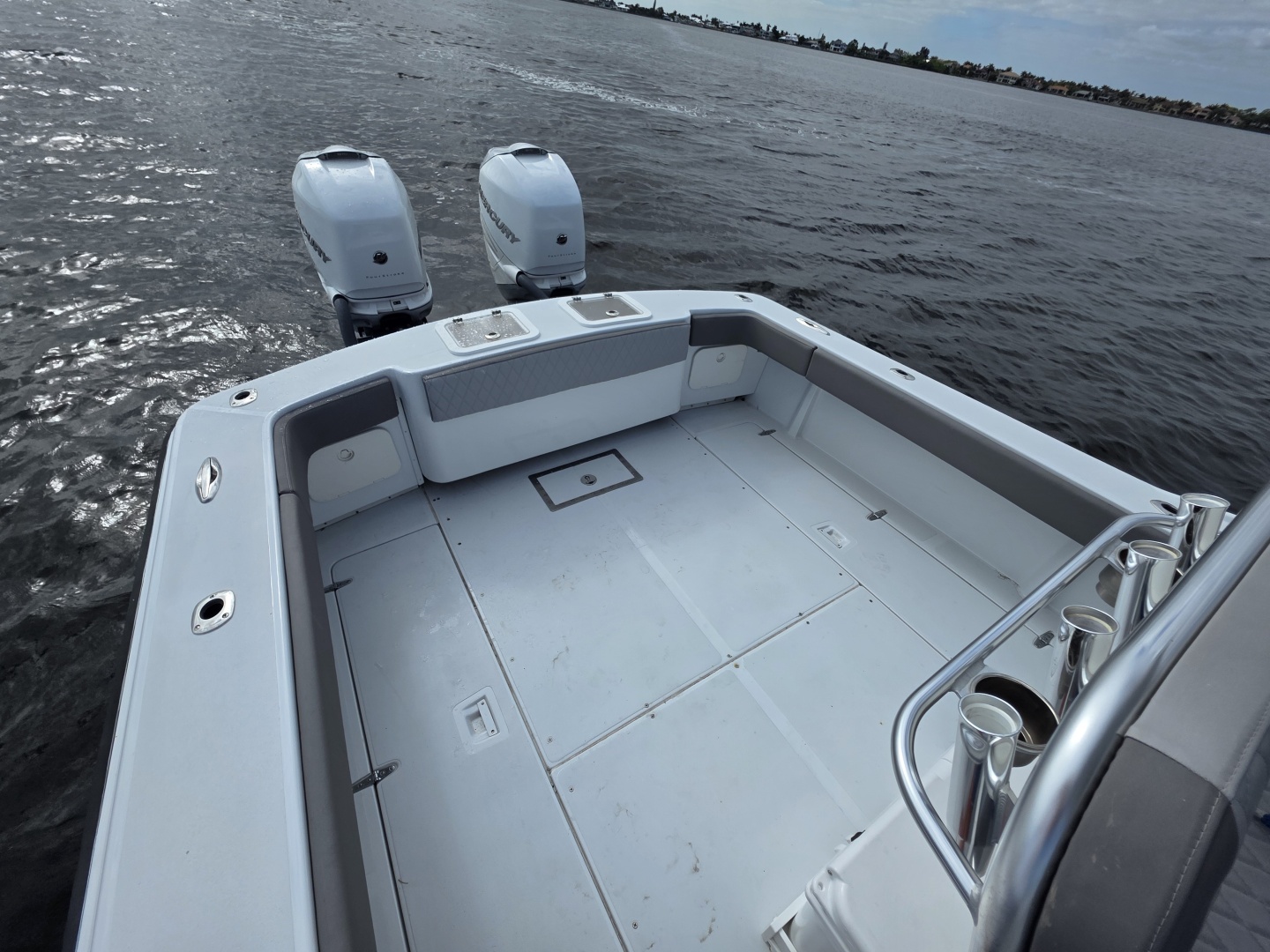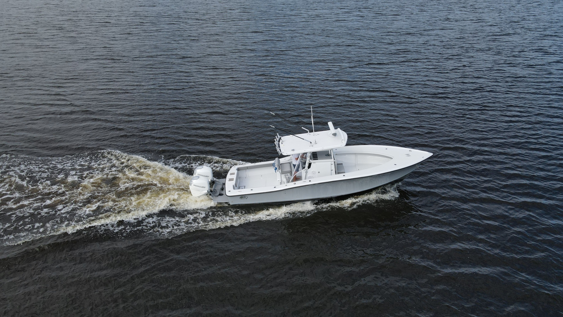 The layout is purpose-built for serious anglers. The center console configuration offers 360-degree fishability, with wide gunwales, and ample cockpit space. Below deck and in the cockpit, the boat includes large fish boxes, an aft livewell, multiple rod holders, and saltwater washdown systems. The console itself is sizable enough on many builds to house electronics and even a small head compartment, emphasizing its offshore readiness and practicality for long fishing days.