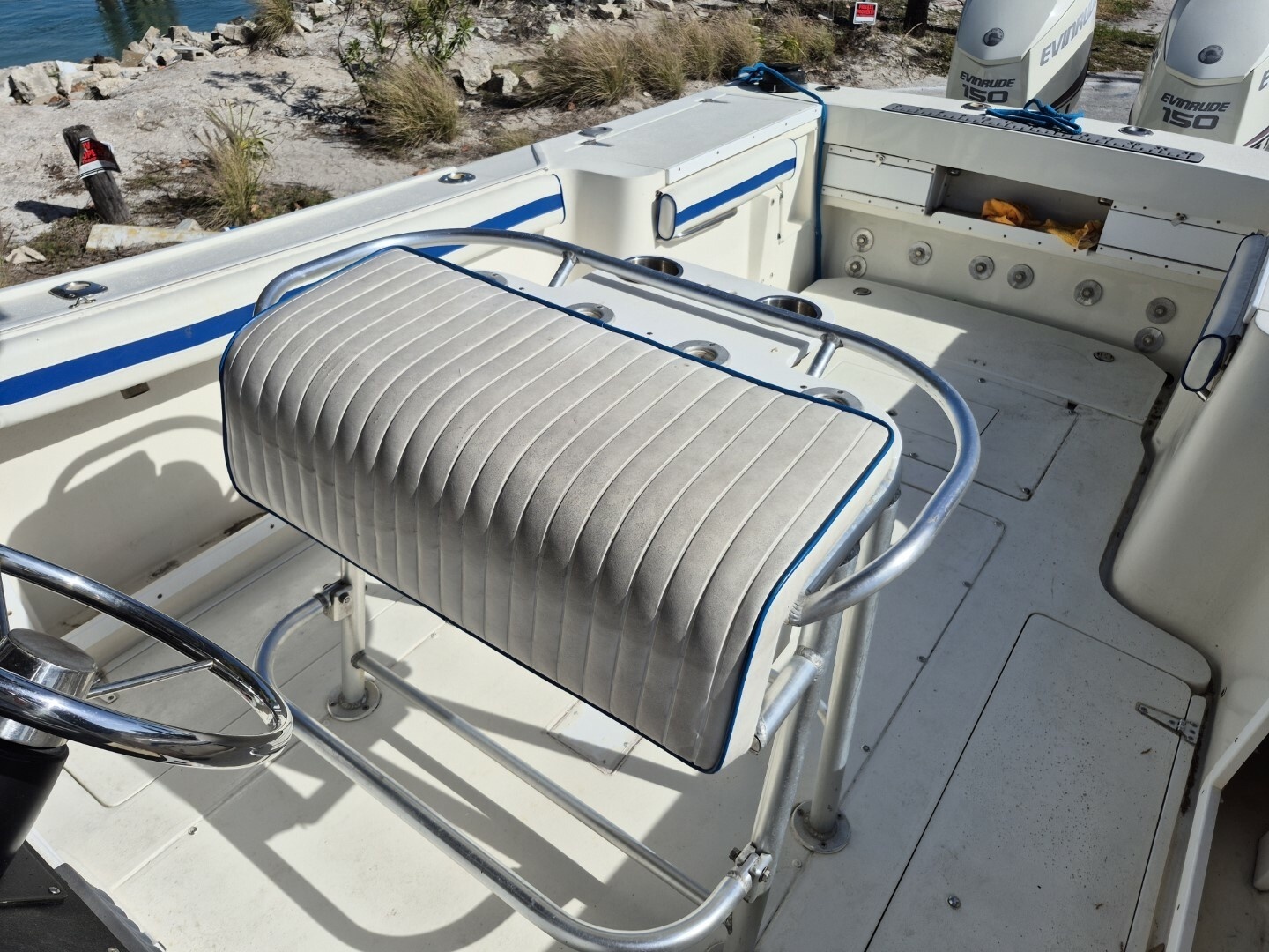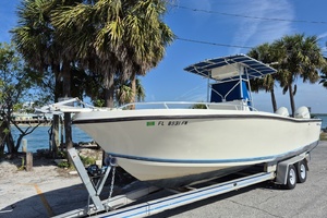1987 Mako 261 re-powered with 2015 Evinrude Etec 2 stroke fuel injected outboards with fly by wire controls. Hours are appproximately 1025. Last serviced in January of 2026 by Suncoast Marine. New enclosed transom and engine bracket in 2023. Solid floor and transom. Loaded. Twin Simrad GPS/Sonar, Simrad auto-pilot, Rhodan 96 inch trolling motor/GPS anchor, 36V lithium batteries with charger, forward seating cushions, newer coaming pads, leaning post with rocket launchers etc.