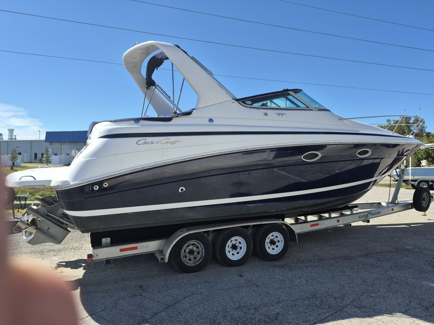 Spacious 32' extravagantly appointed Center Steer Express Cruiser with 4' swim platform extension for 36', and optional 2017 17,000lb tri-axel trailer, equipped with multiple-braking negotiable. Always a fresh-water boat since new 2nd owner, less than 250 hours on repowered, twin 5.7 EFI V-8's, 2019 & 2022. OEM rebuilt Volvo Penta Duo-Prop outdrives 2023, by factory authorized shop, technicians and parts.