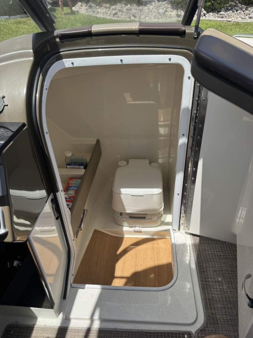 • Enclosed Head: A dedicated compartment with a porcelain head and holding tank, providing comfort for full days on the water.