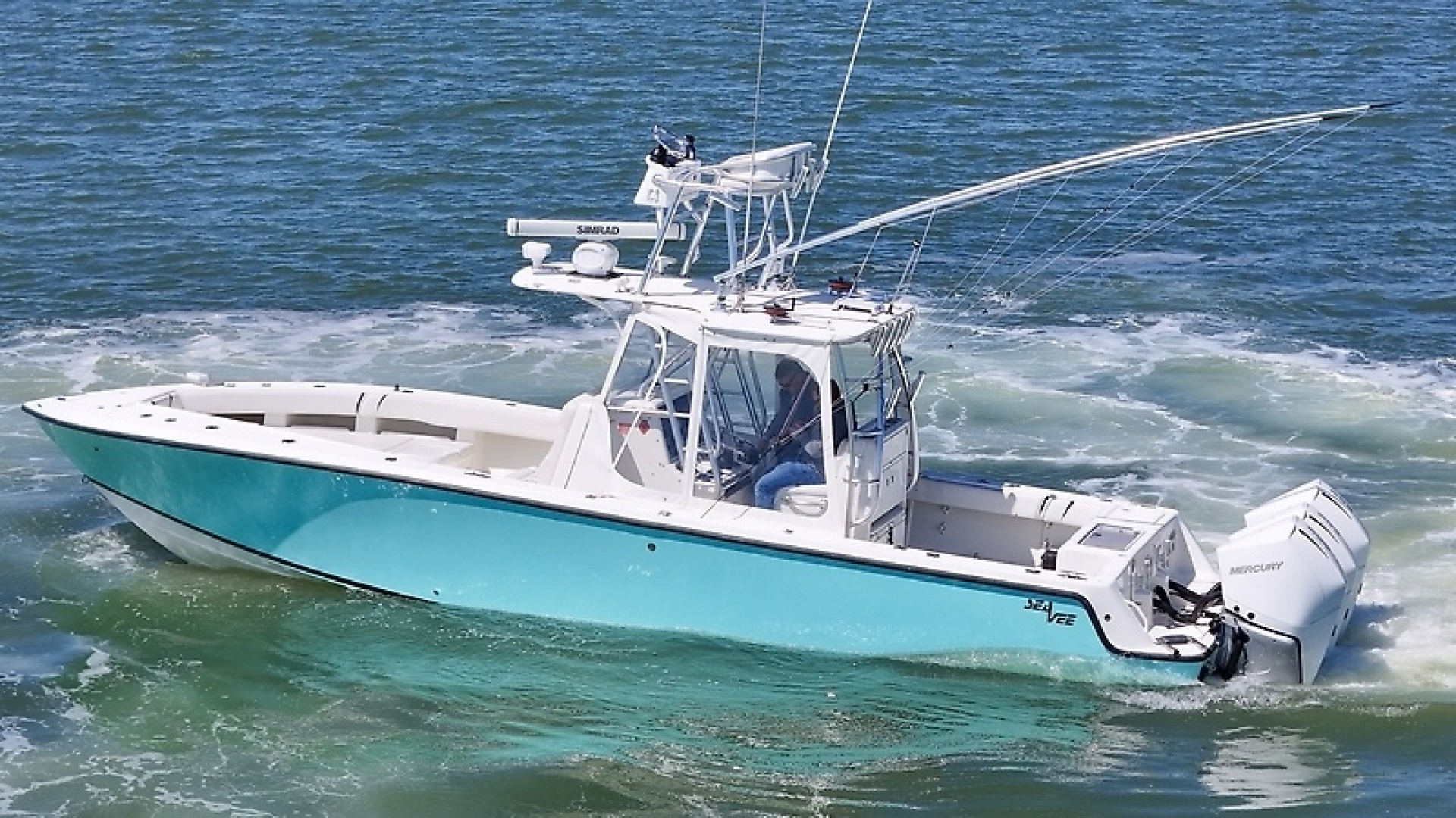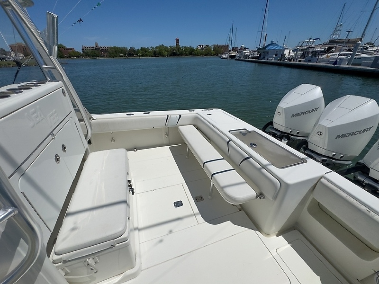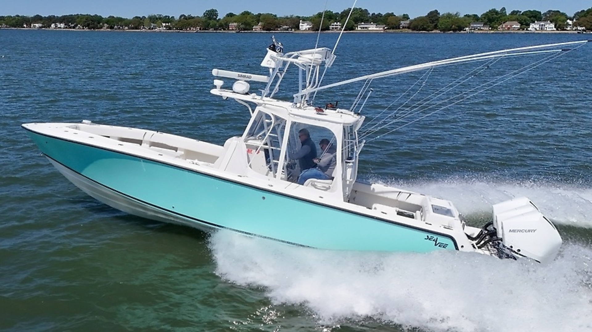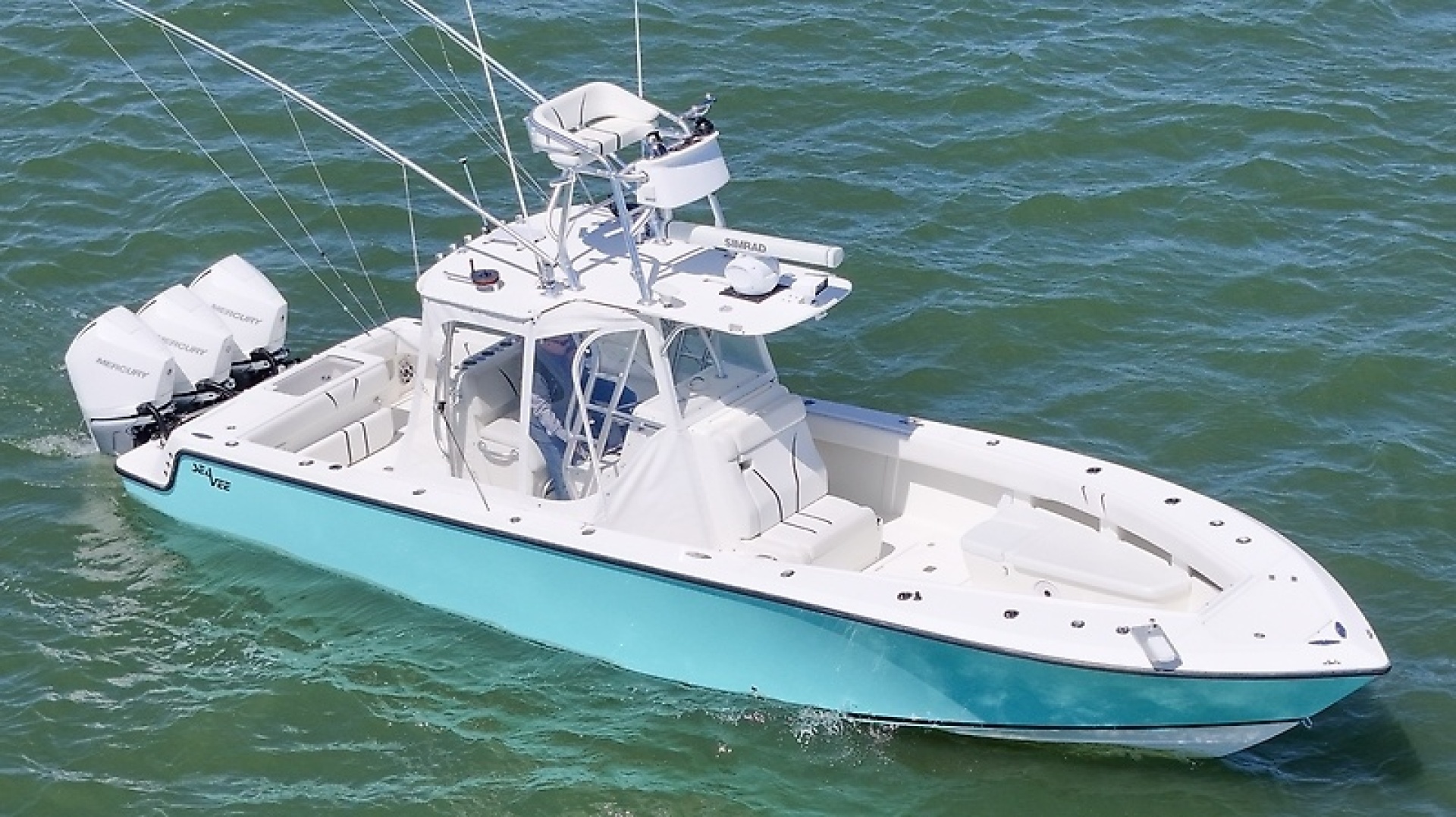 This SeaVee 340B is a fisherman’s dream! Loaded with great options and available immediately! Updated Simrad electronics. Mercury platinum engine warranty through June 10 2027. Located in Hampton, VA on a lift. SeaVee’s B series is a conventional deep v design that gives you a smooth comfortable ride with its 23.5 degree deadrise.Key features;