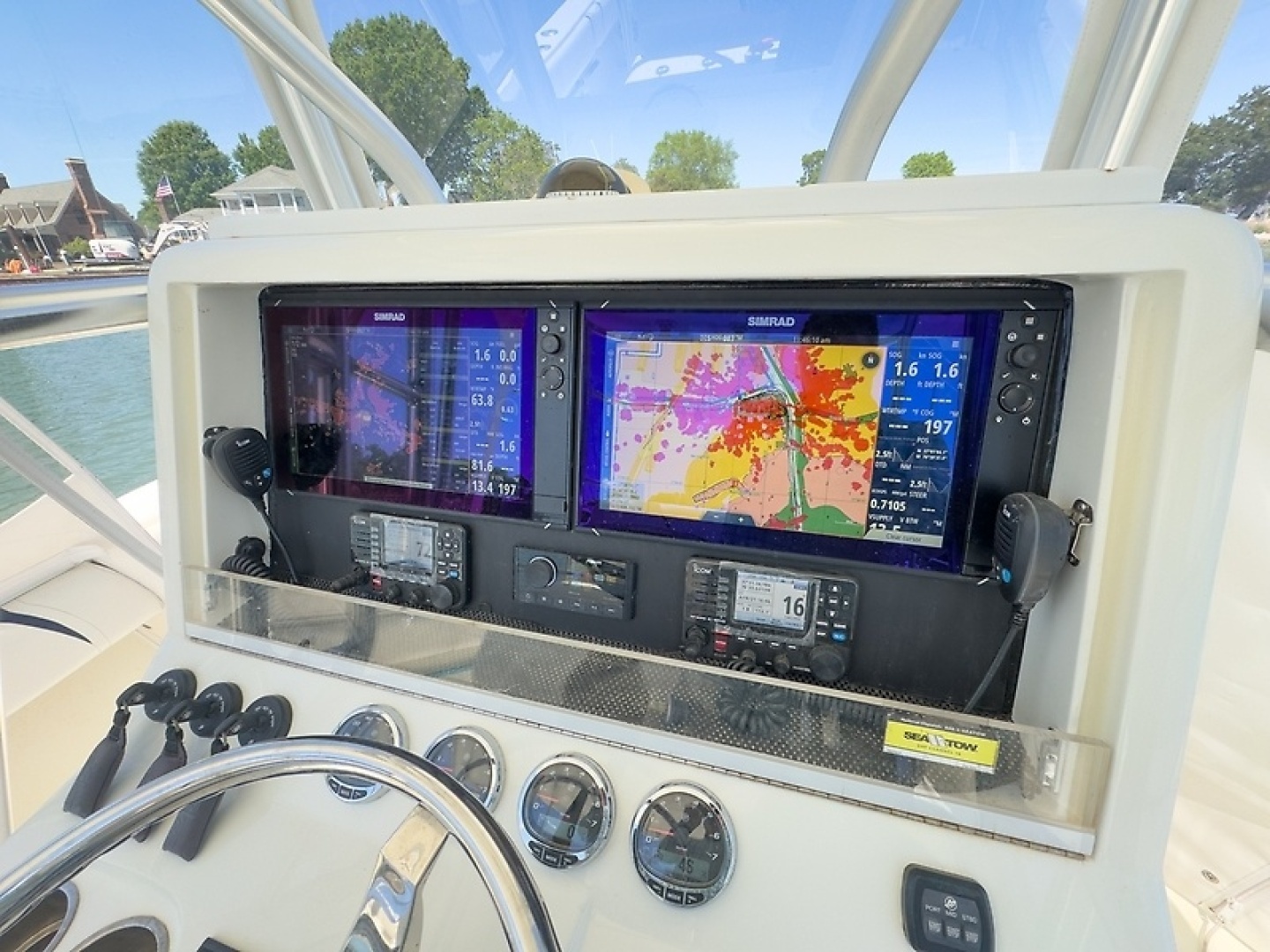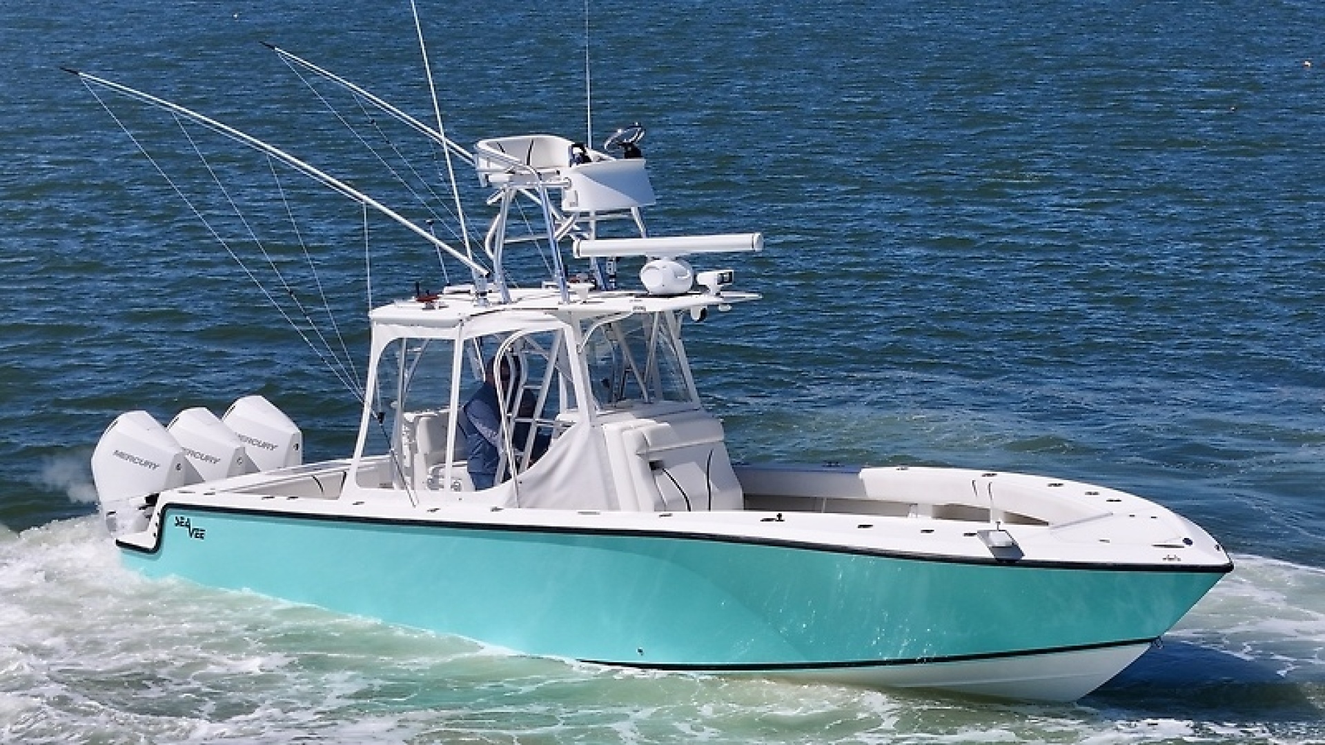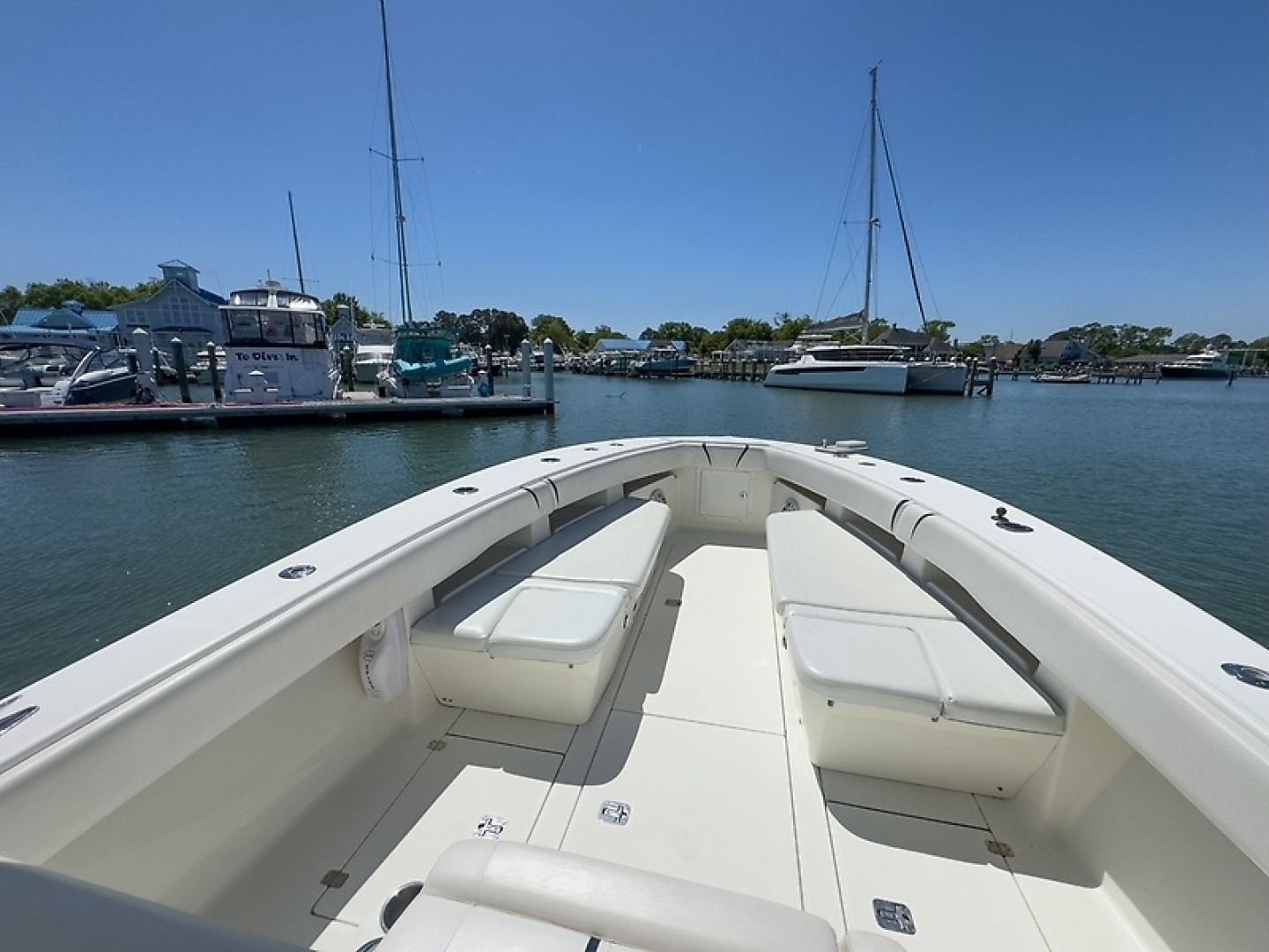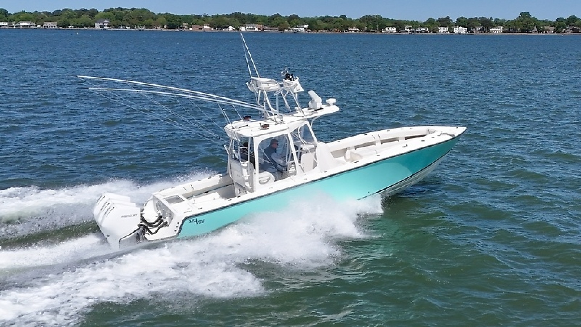 This SeaVee 340B is a fisherman’s dream! Loaded with great options and available immediately! Updated Simrad electronics. Mercury platinum engine warranty through June 10 2027. Located in Hampton, VA on a lift. SeaVee’s B series is a conventional deep v design that gives you a smooth comfortable ride with its 23.5 degree deadrise.Key features;