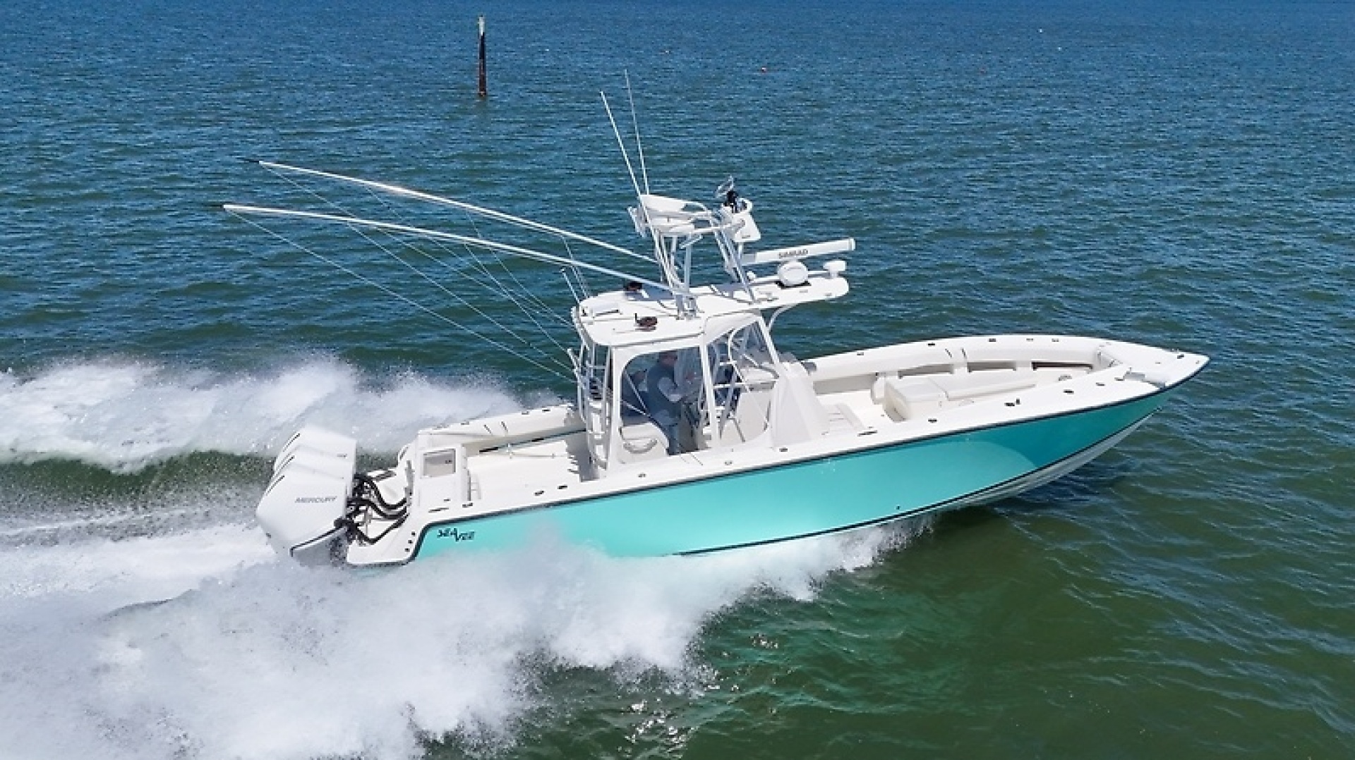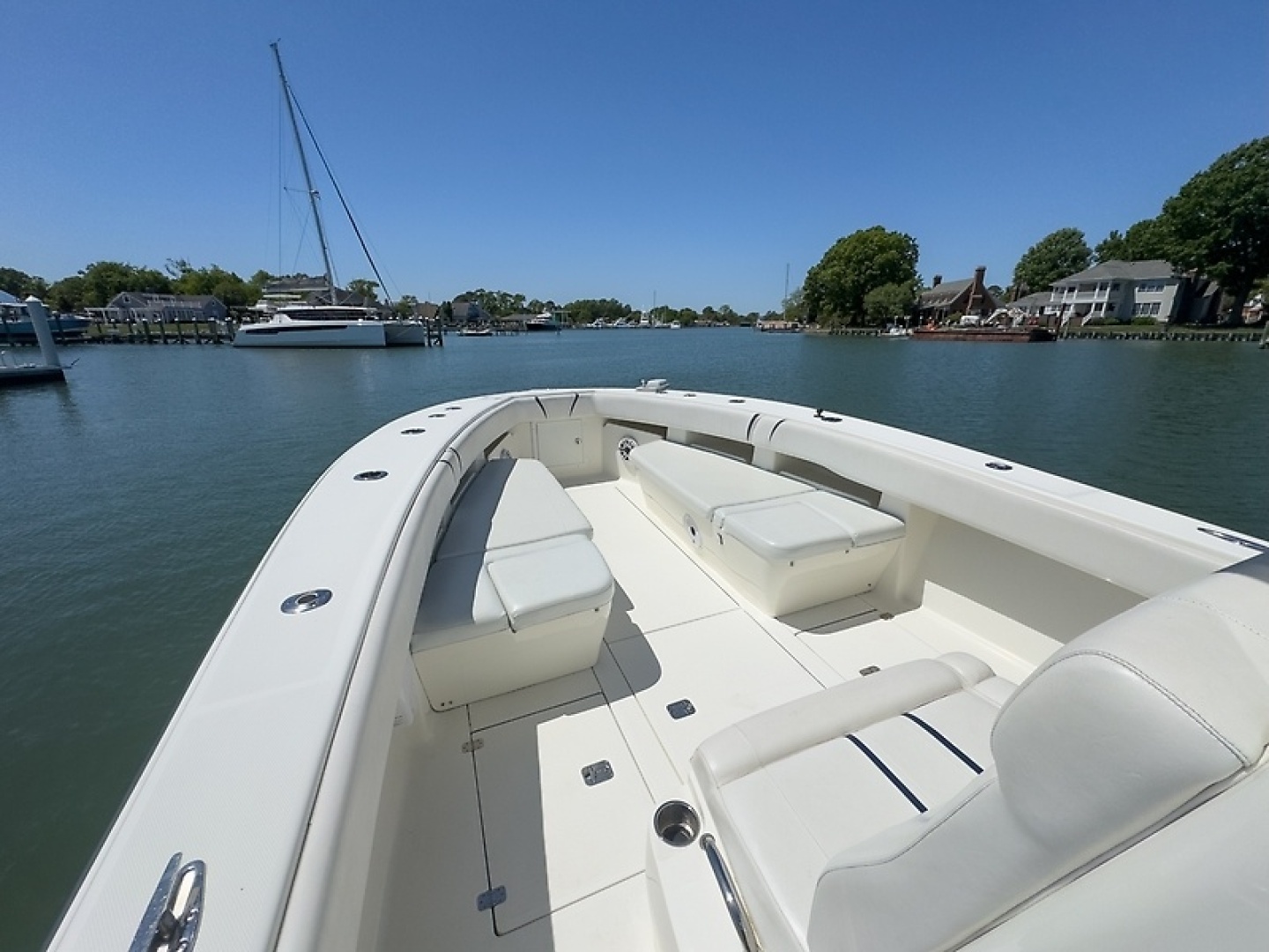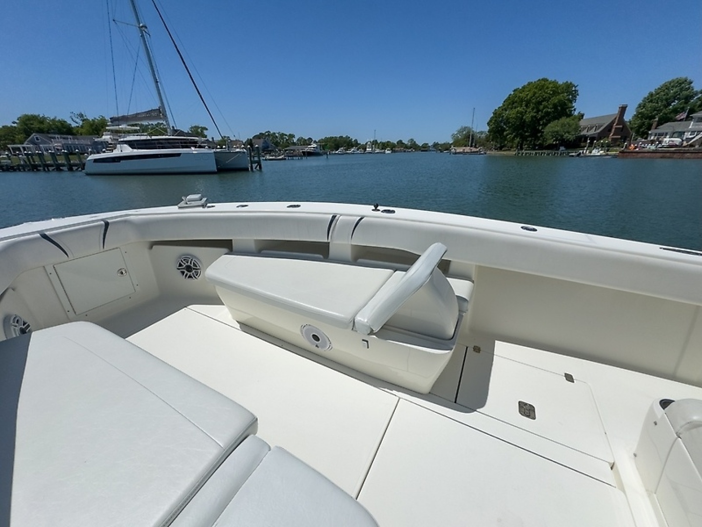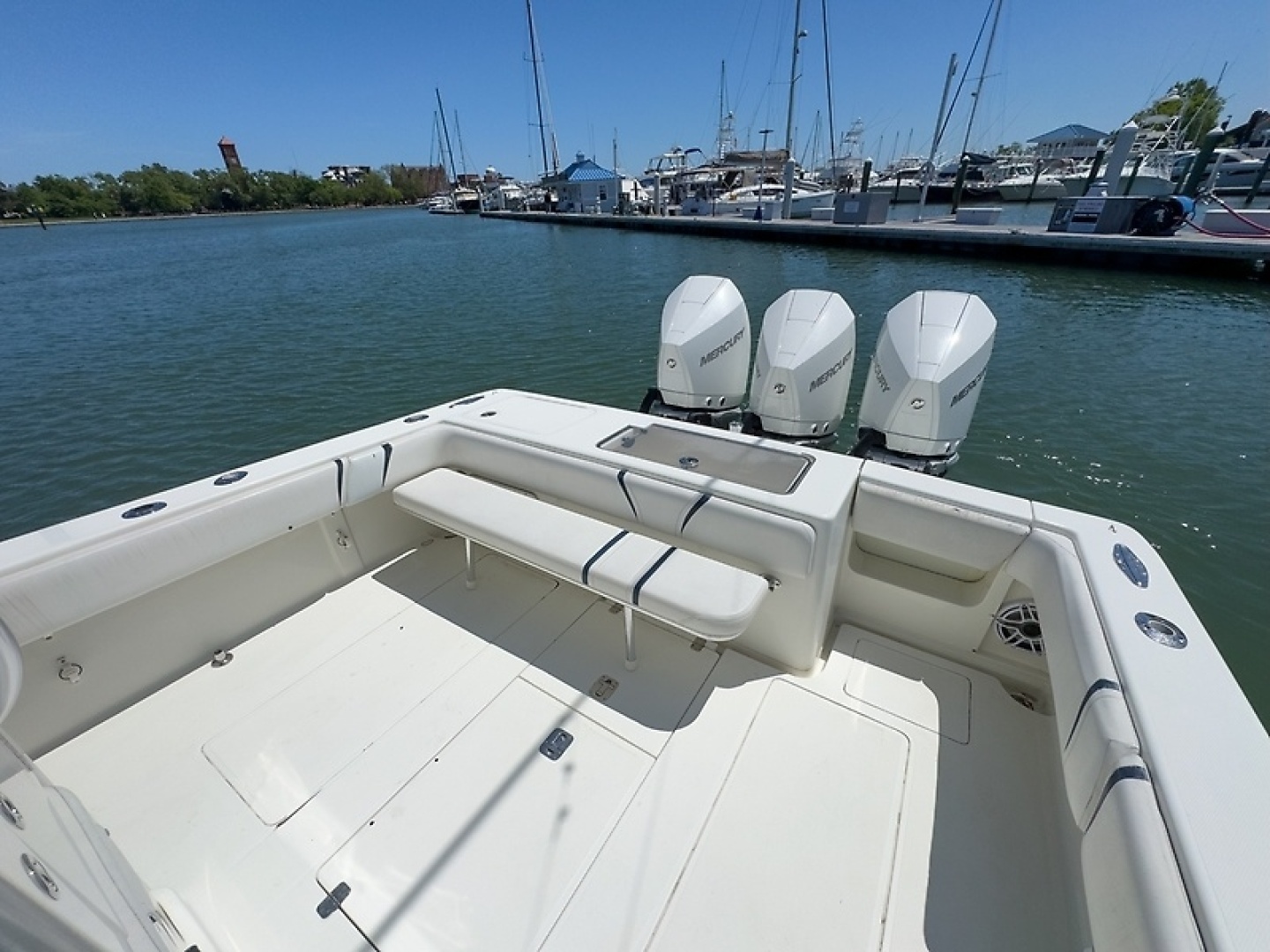 This SeaVee 340B is a fisherman’s dream! Loaded with great options and available immediately! Updated Simrad electronics. Mercury platinum engine warranty through June 10 2027. Located in Hampton, VA on a lift. SeaVee’s B series is a conventional deep v design that gives you a smooth comfortable ride with its 23.5 degree deadrise.Key features;