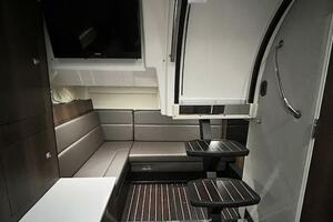 Boat appearance is maintained by a professional detail service. It is washed twice a month and polished/waxed full detail every 3 months. The hull and sterndrives are maintained, scraped/cleaned, once a month by a professional service.
