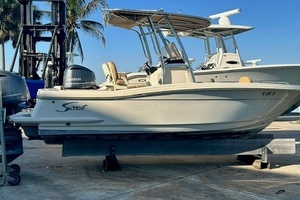 The 215 XSF delivers Scout’s balanced ride and efficient handling in a compact, go-anywhere package. The NuV3 hull tracks cleanly through chop, while the Hardtop Elite package adds the shade and protection you want for long days on the water. A single Yamaha 250 provides confident performance with ~285 hours—ideal for family cruising, beach runs, or inshore fishing.