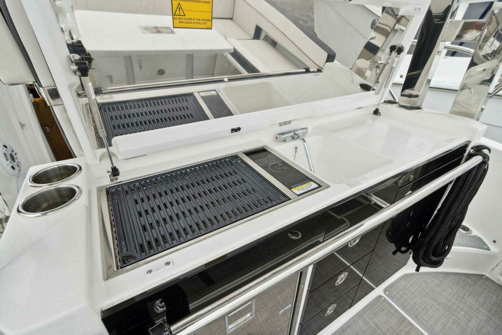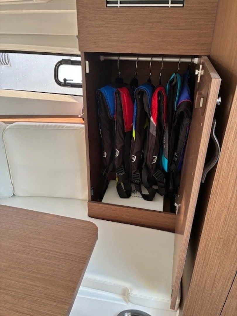 The 2022 Jeanneau Leader 10.5 WA Series 2 is a performance-driven walkaround that delivers style, speed, and versatility. Twin Yamaha 425HP through a Michael Peters deep-vee hull, reaching 35+ knots with confident handling. Joystick docking makes tight-quarters maneuvering effortless. The deck layout shines for entertaining, with cockpit seating for 8+ and a bow sun pad, while two cabins and a head add overnight capability.