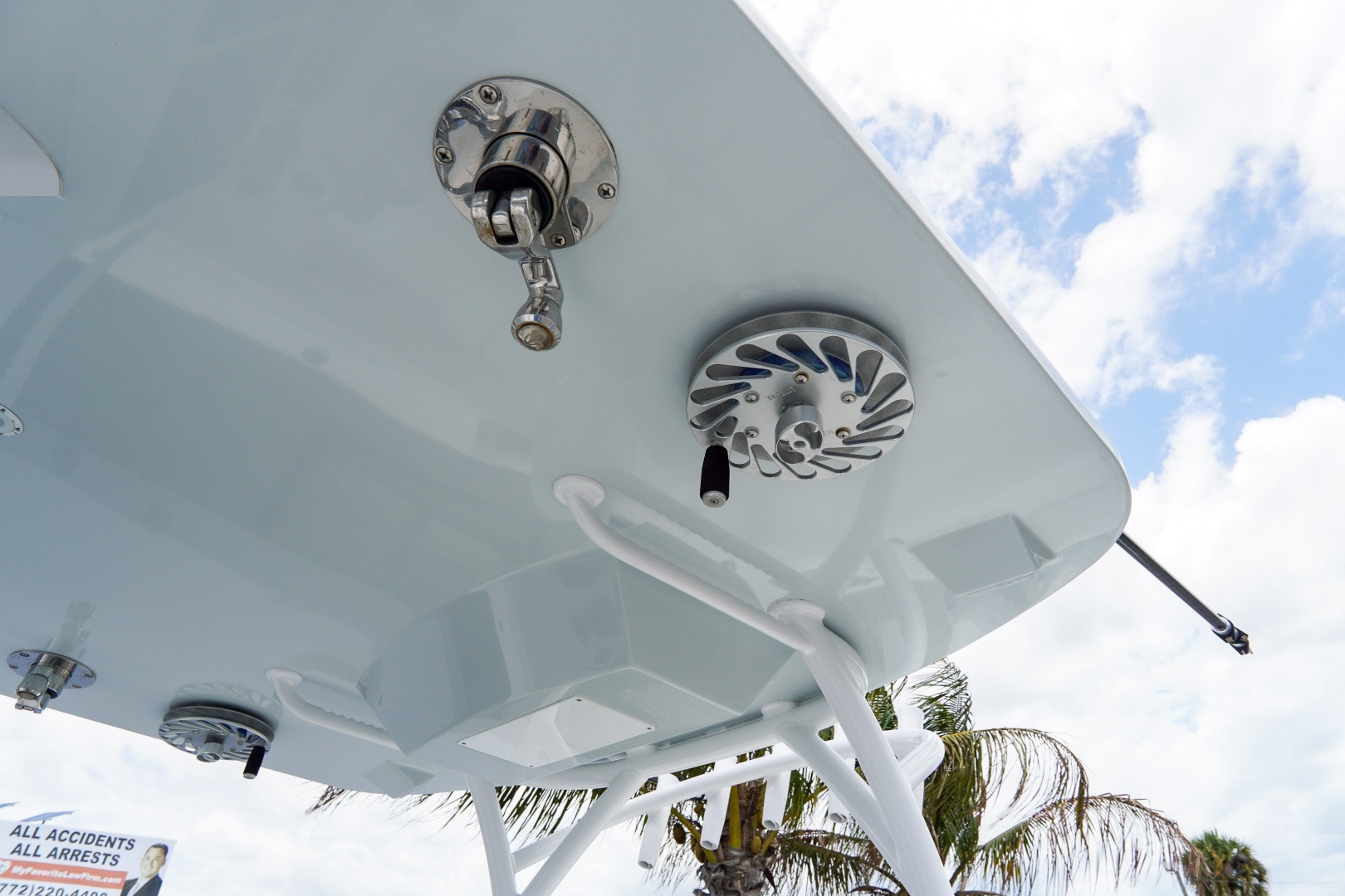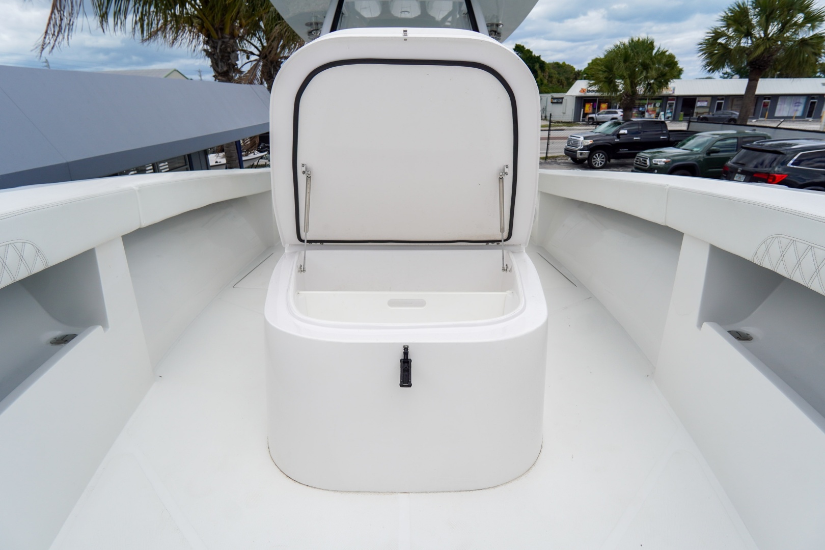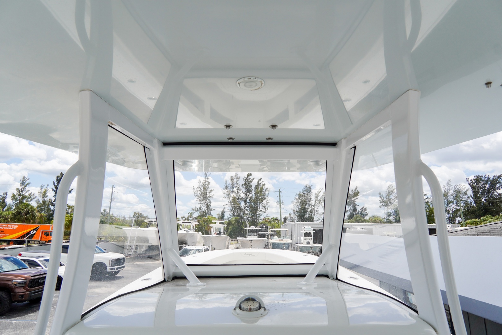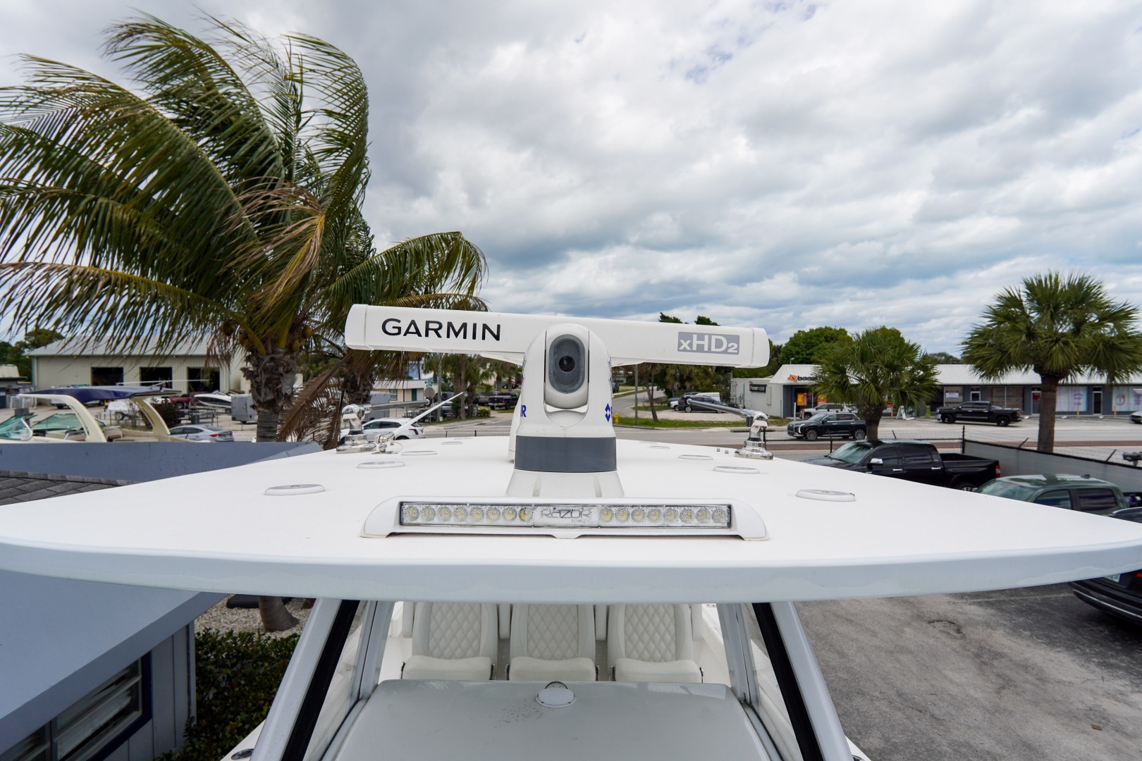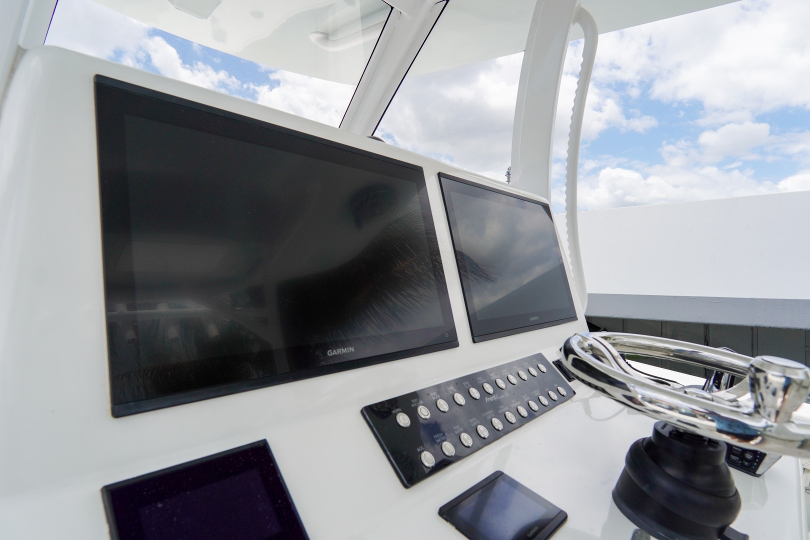 Finished with a striking two-tone hull, matched hardtop underside, and triple white engines, this 36 Front Runner delivers both head-turning style and serious offshore capability.