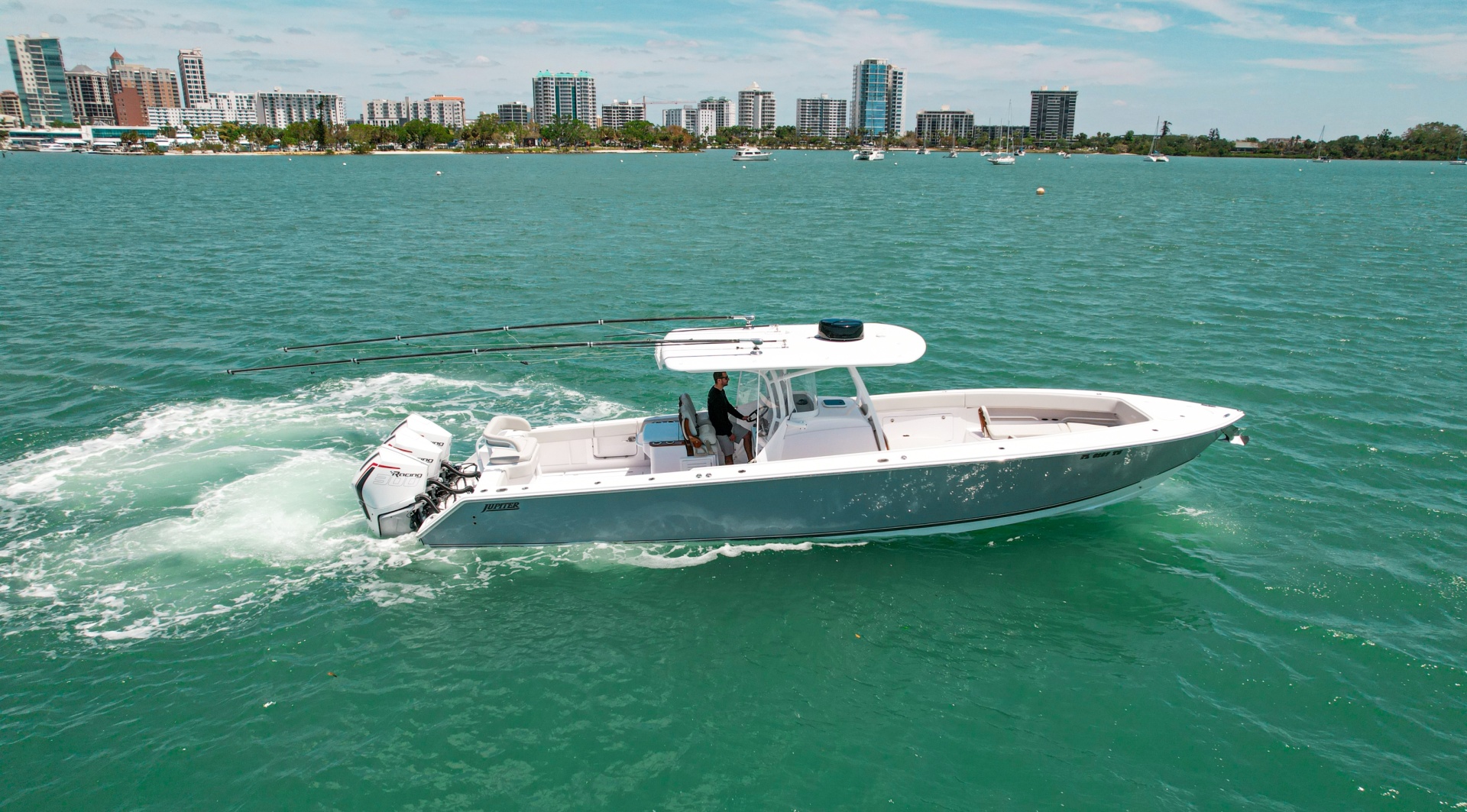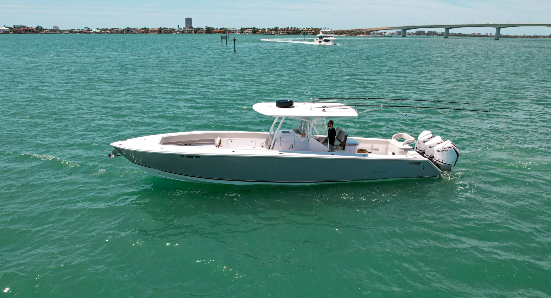 This 38 HFS was built for both the serious anglers and the family! The Jupiter 38 is above the competition with their build process using, Closed Cell PVC Foam Coring, Deck is Mechanically Fastened and Fiberglass Bonded to Hull, Fiberglass Uni-Grid Stringer System, Hand-Laid with Multidirectional Biaxial & Triaxial Knitted Fiberglass, Ceramic Poured Transom, Inner Liner Integrally Bonded to Hull, No Wood-No Rot Laminated Design, Posi-Sternâ„¢ Hull Pad Design, Vinylester Resin Barrier to Prevent Osmotic Blistering, with a Solid Fiberglass Bottom give the Jupiter its solid reputation for being an extreme contender in the elite performance center console market and why owners continue to build with Jupiter!