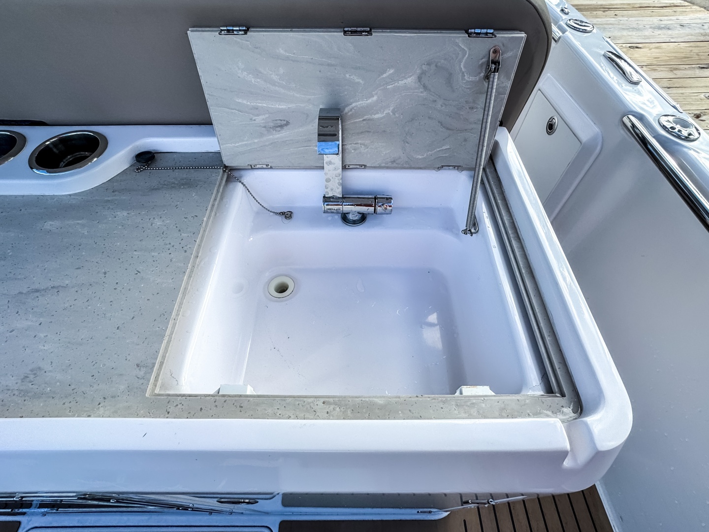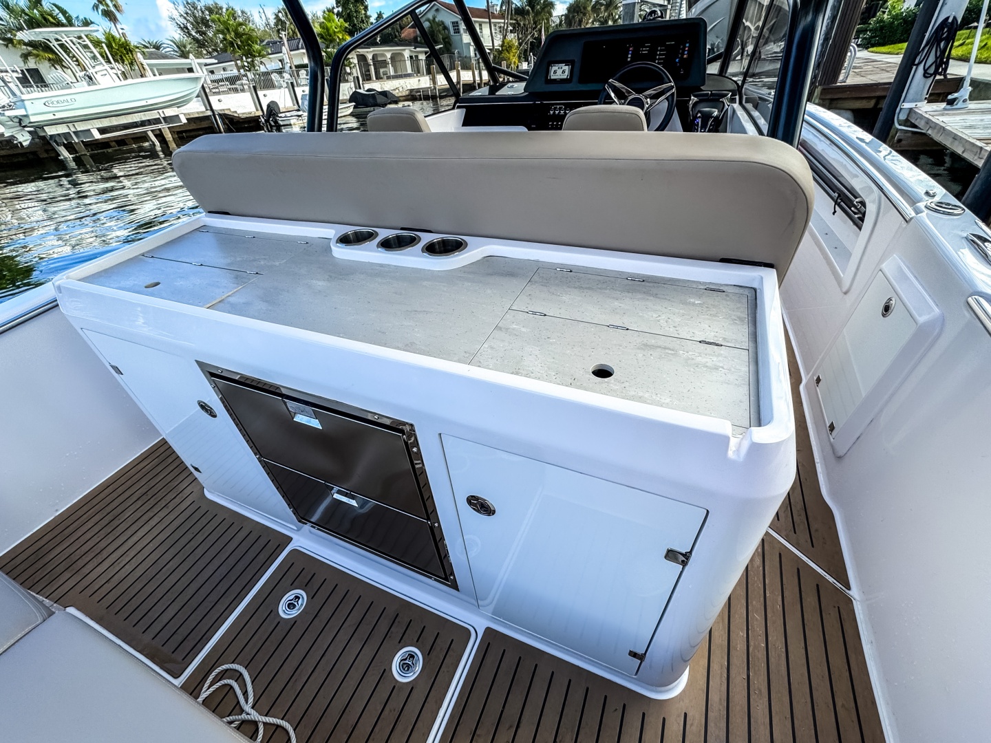 The driver’s position feels ergonomic, intuitive, and visually stunning. Sport Seats with flip-up bolsters and side support allow seated and standing helming. Angled dash designed for full visibility and glare reduction, even at high speed.