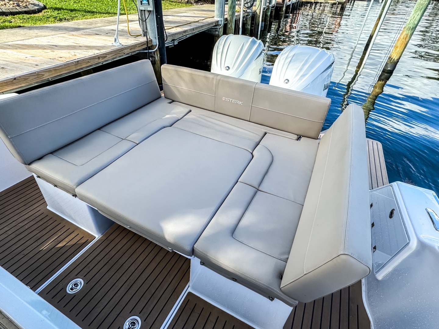 The convertible U-shaped lounge with sunbed transforms the deck into a vibrant social zone—perfect for open-air dining, entertaining, and romantic sunsets. Passenger seats with a leaning function ensure safe, enjoyable cruising. Bow and cabin storage keep everything neatly organized.