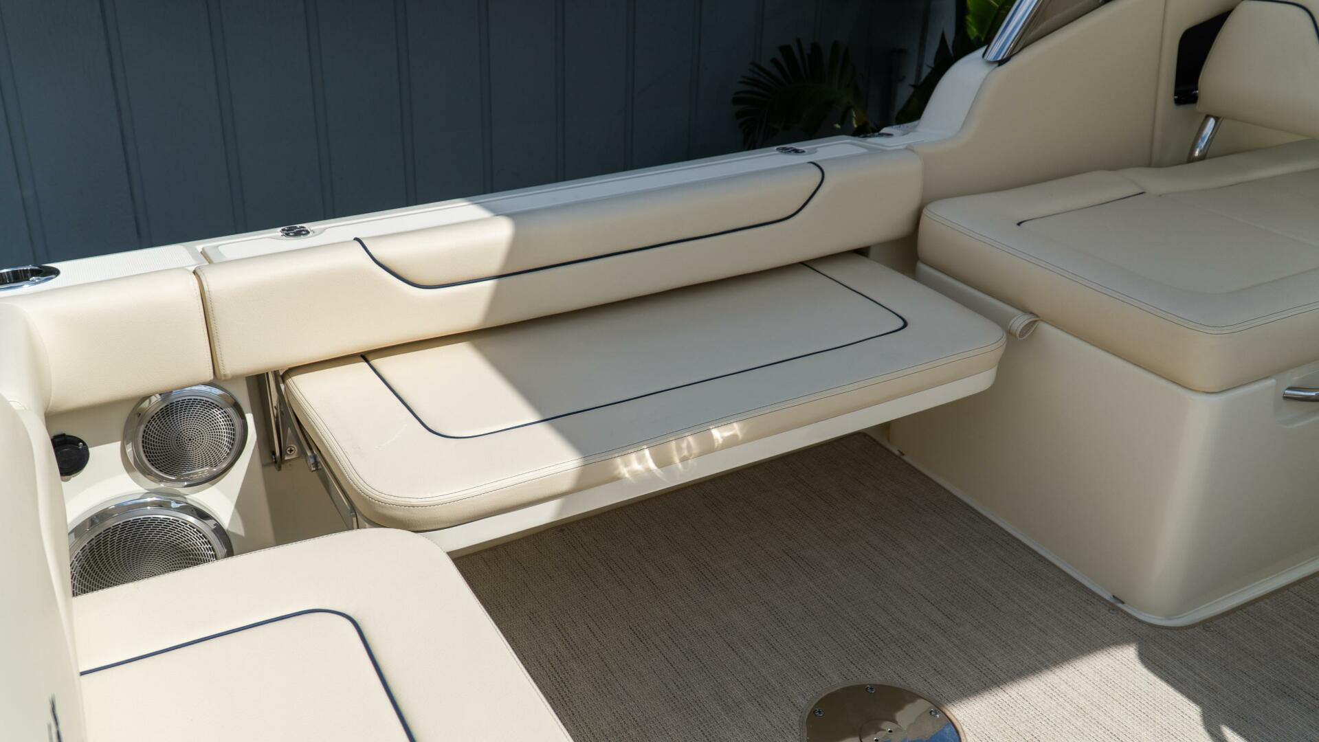 Designed for both performance cruising and refined entertaining, this boat featuressynthetic teak decking, a fully equippedcockpit galley with refrigerator, sink, and grill, and apremium audio systemthat transforms every cruise into an experience.