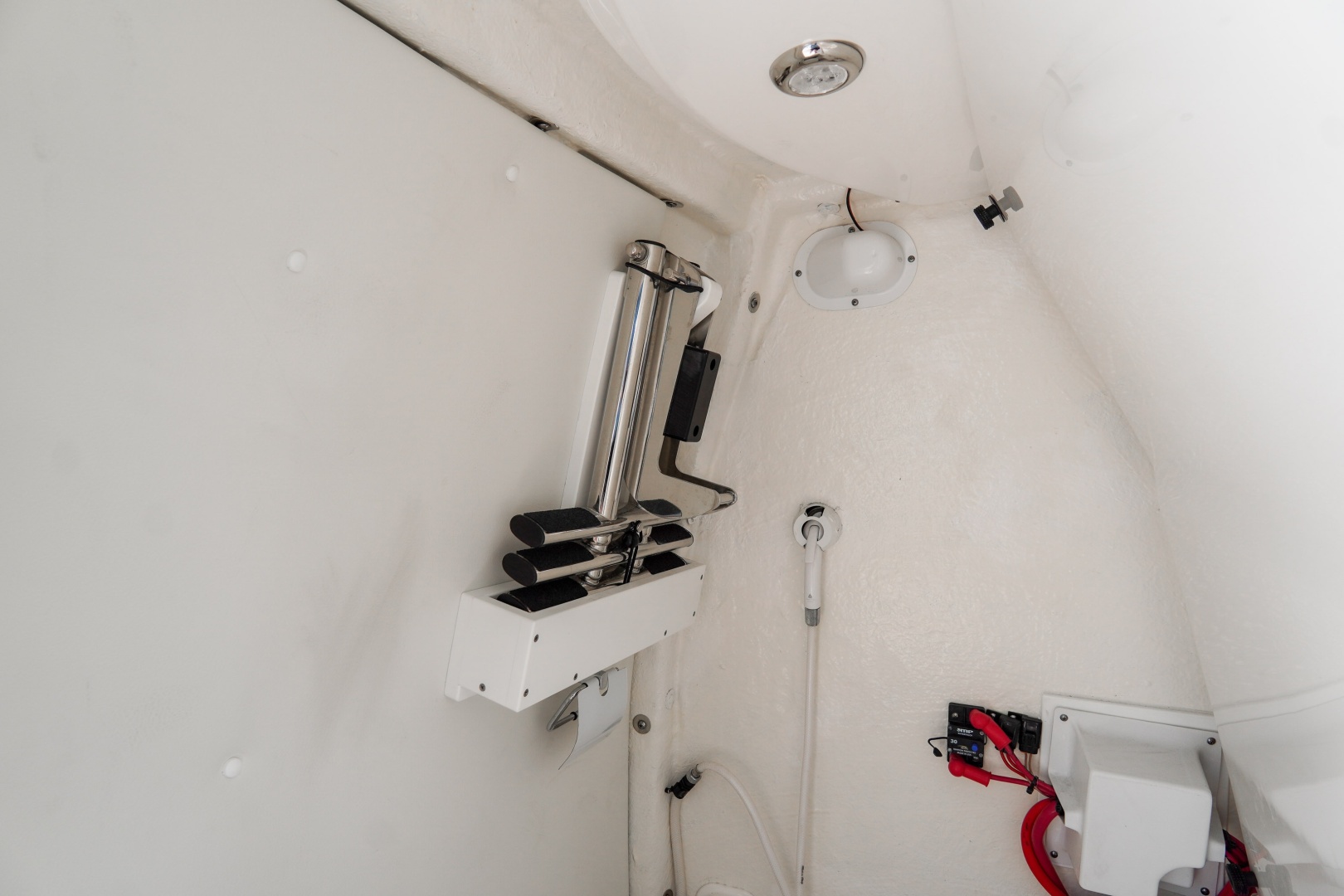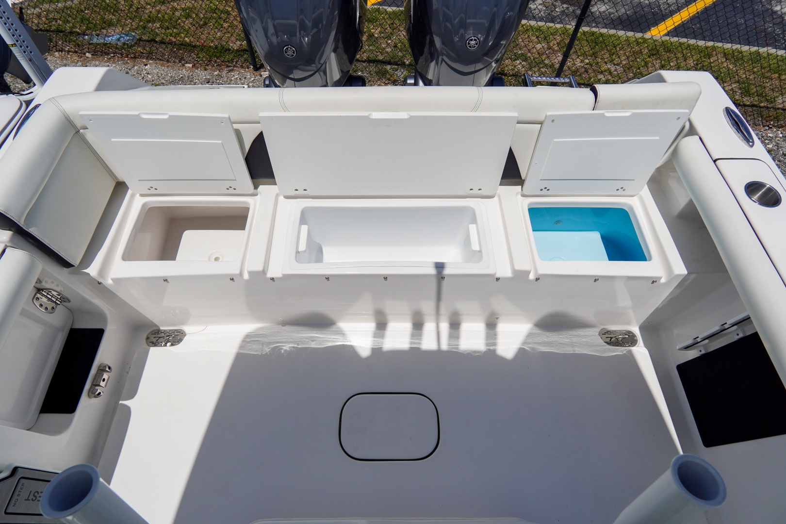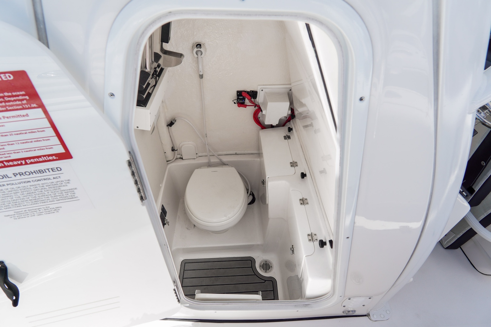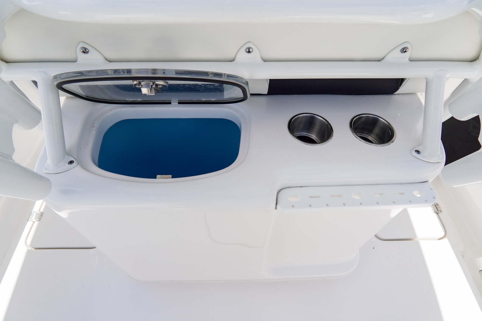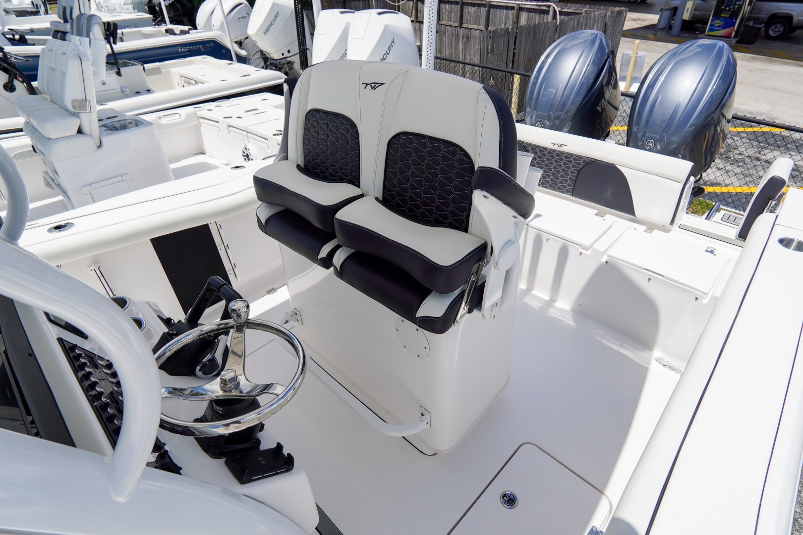 Equipped with advanced Garmin technology, including the GPSMAP® 1243xsv and a GT12M-THF Thru Hull Chirp transducer, you’ll have precise navigation and fish-finding capabilities at your fingertips. The fiberglass livewell leaning post offers ample space for your catch, while the built-in China head with overboard discharge ensures convenience and comfort during longer outings.