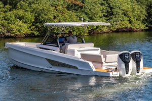 The 31 accommodates up to nine passengers and provides ample deck space, including generous sunbeds and a spacious cockpit.