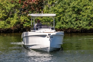 Finished in classic white with silver accents, almond Nautilus upholstery, and EVA soft-teak decking. Equipped with a full electrical system, triple bilge pumps, a C E-certified tank, and a foldable ladder.