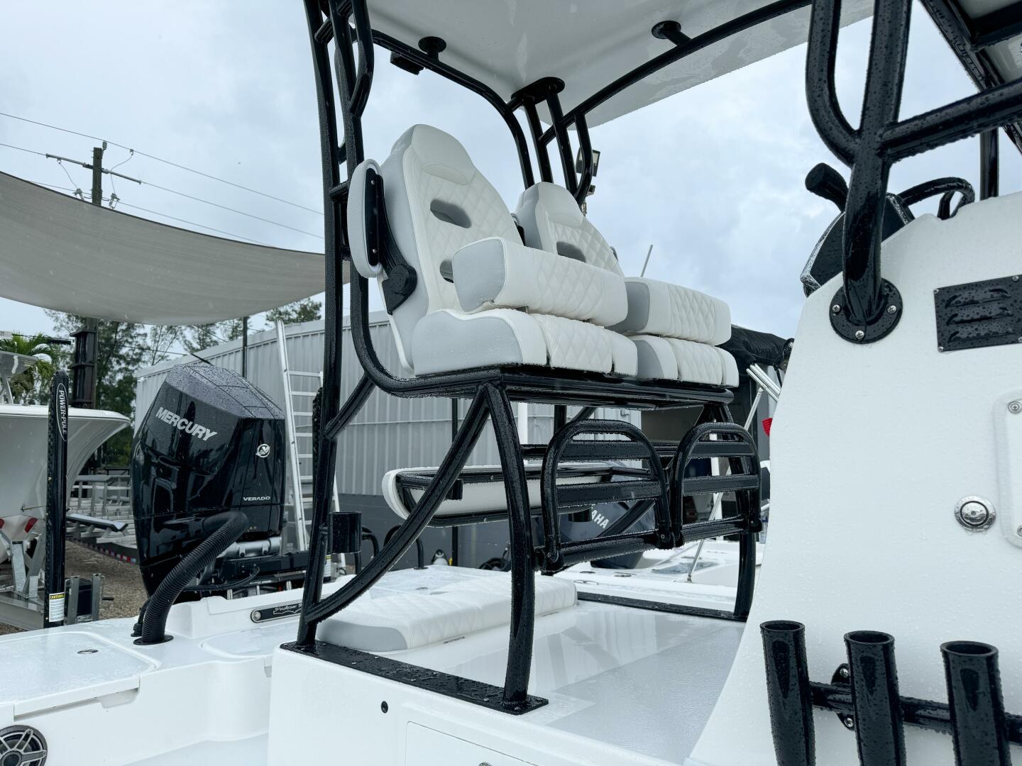 Step aboard and you’ll findTaco Open Water helm chairs,diamond-stitched upholstery, arear folding lean back, and a premiumJL Audio + Garmin Fusion sound systemwith subwoofer and amps for all-day enjoyment. Added comforts like multi-color deck lighting, underwater LEDs, and a 30” PlashLights LED light bar ensure this 25 X3 is ready for both sunrise runs and night cruises.