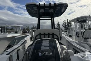 Designed for comfort and function, the cockpit features amezzanine seat leaning post with insulated cooler, ideal for long offshore days. Fishing amenities includeextra stainless steel rod holders at the bow and mid-ship, whilePhender Pro fender cleatsadd practical convenience and hull protection. A4-bank charger systemsupports onboard electronics and accessories.