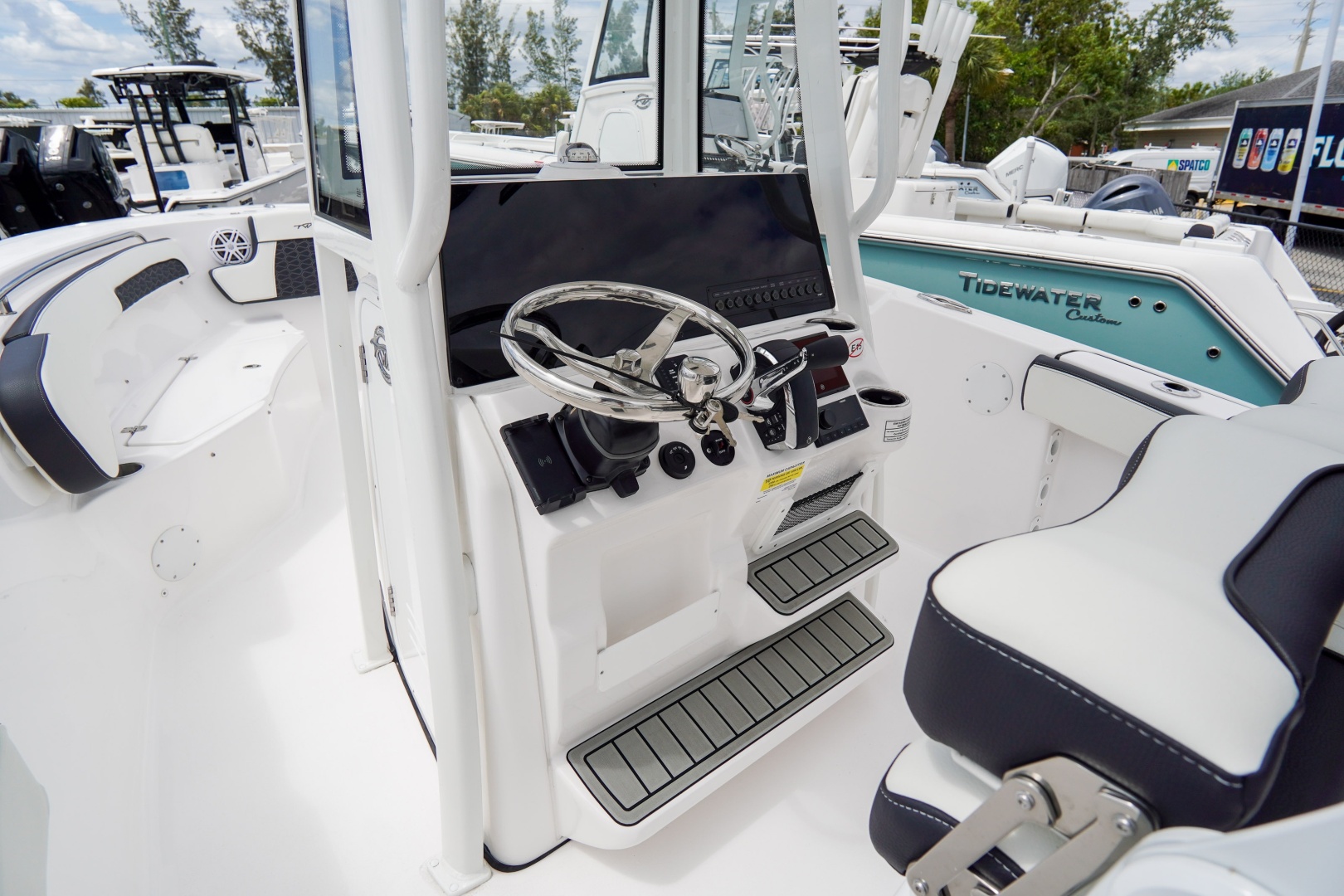 Comfort features include a freshwater shower for rinsing off after a swim or a long day on the water, along with Tidewater’s renowned fit and finish throughout. The hull design delivers a stable, confidence-inspiring ride, whether you're cruising the coastline or heading offshore.