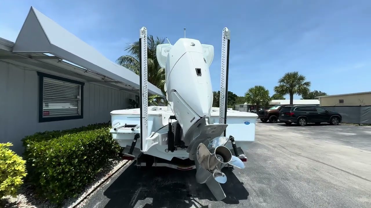Luxury touches include afiberglass T-top with glass enclosure,fresh water shower,full hull color, andwhite powder-coated finishfor a sleek, modern look. Offered with aStuart Boat Show Discount, this fully loaded 2500 Carolina Bay is available now for$127,999.